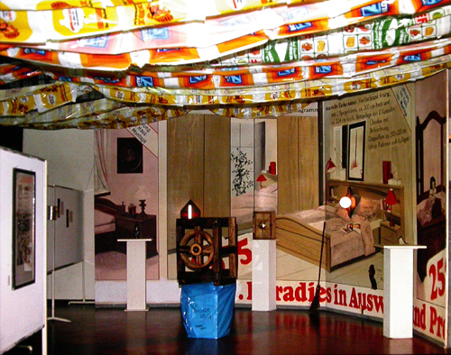 Kunststoffe, 1989: Das besagte Material wurde in Installationen, Objekten, Environments, Assemblagen und Performances in der Markthalle Sonthofen verarbeitet, um einen querdenkerischen Angriff auf die Konsum- und Warenwelt zu starten.